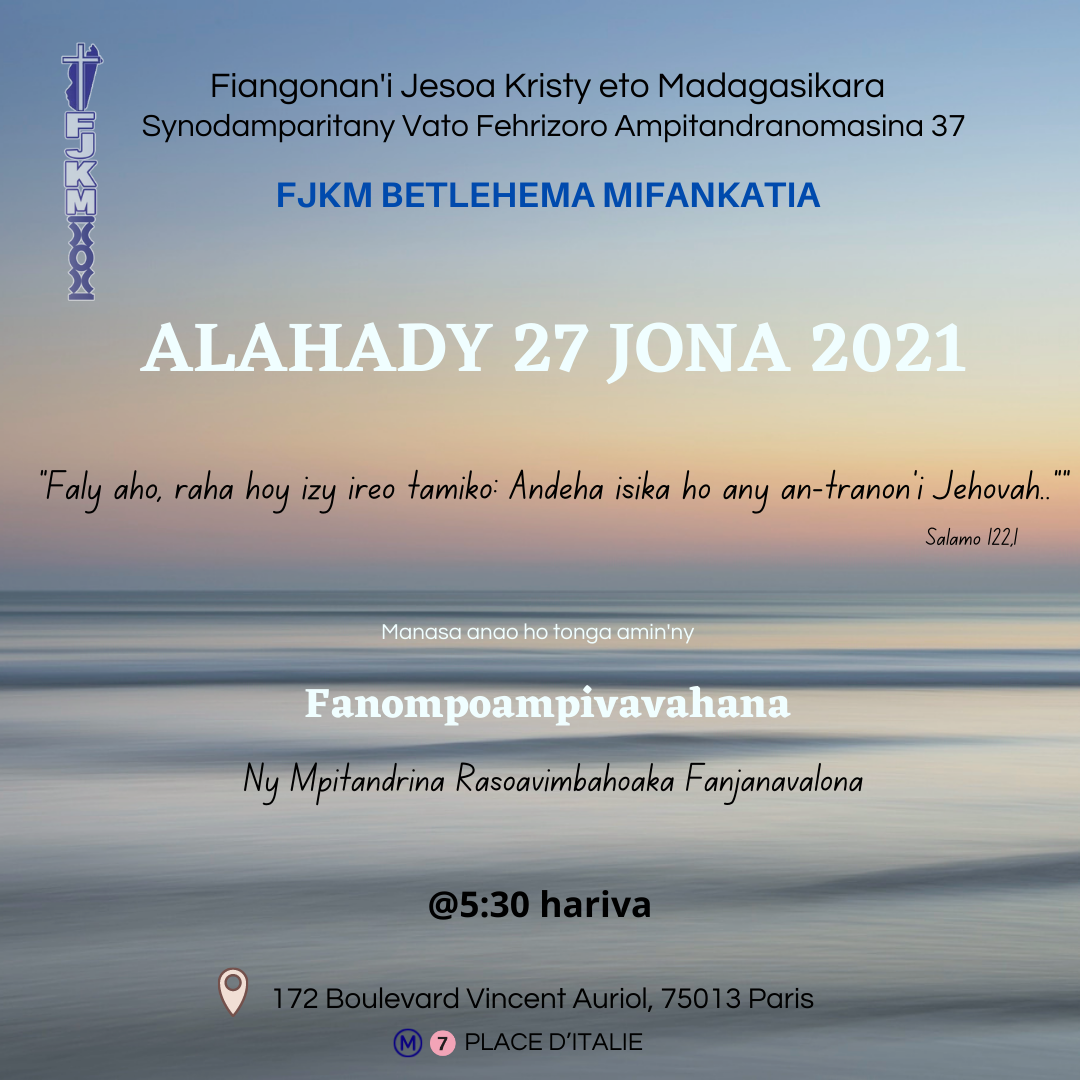 FJKM Betlehema Mifankatia Paris Ny Mpitandrina RASOAVIMBAHOAKA Fanjanavalona tel: 07 49 43 23 85